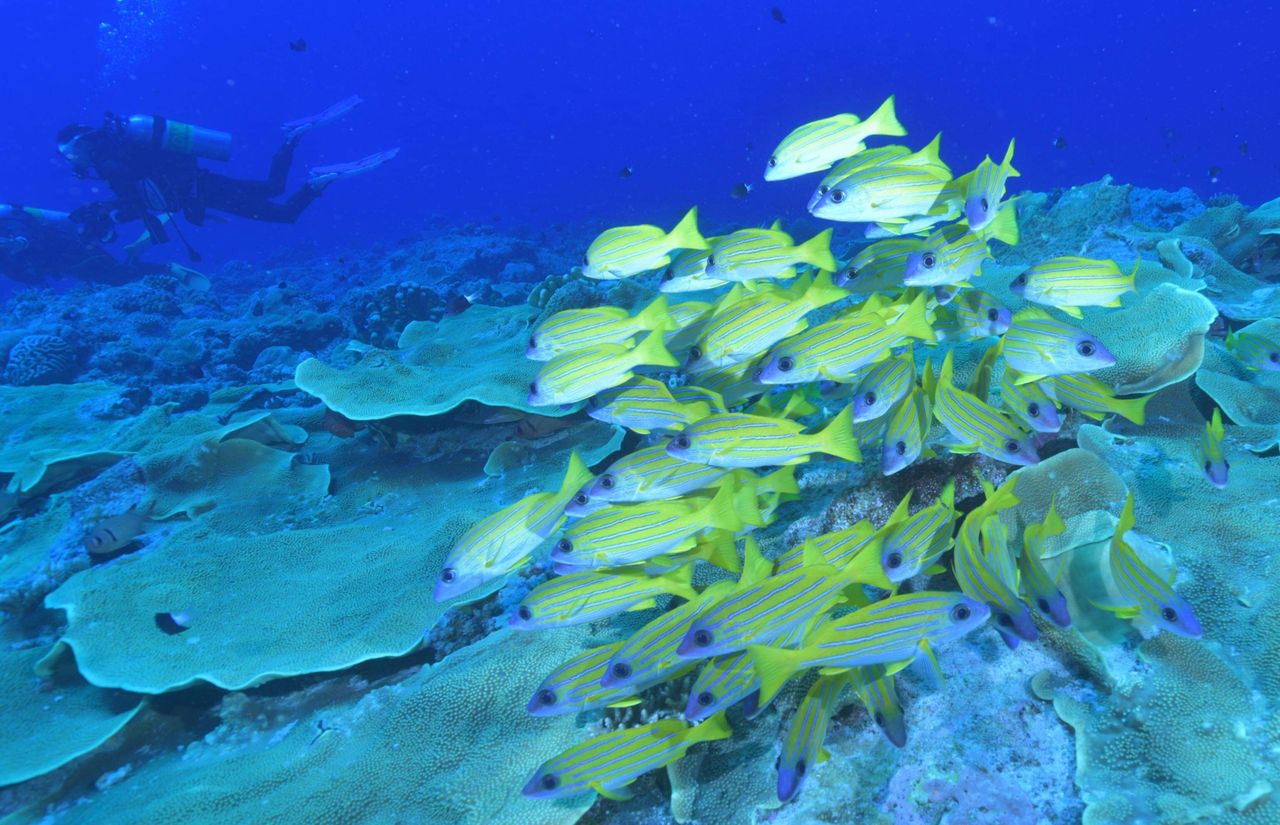 きれいなヨスジフエダイと遊んでいると