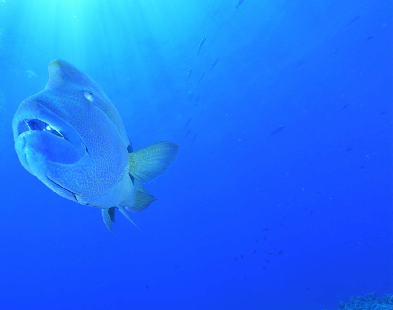 棚上を泳いでいるとイトヒキアジ登場!