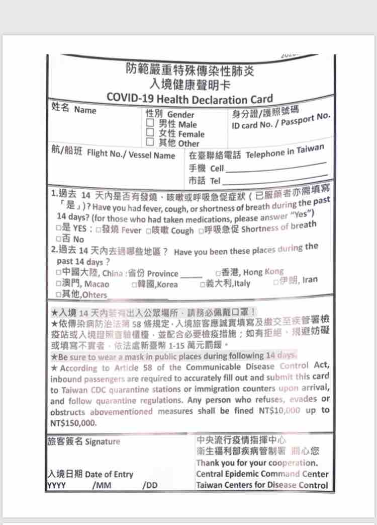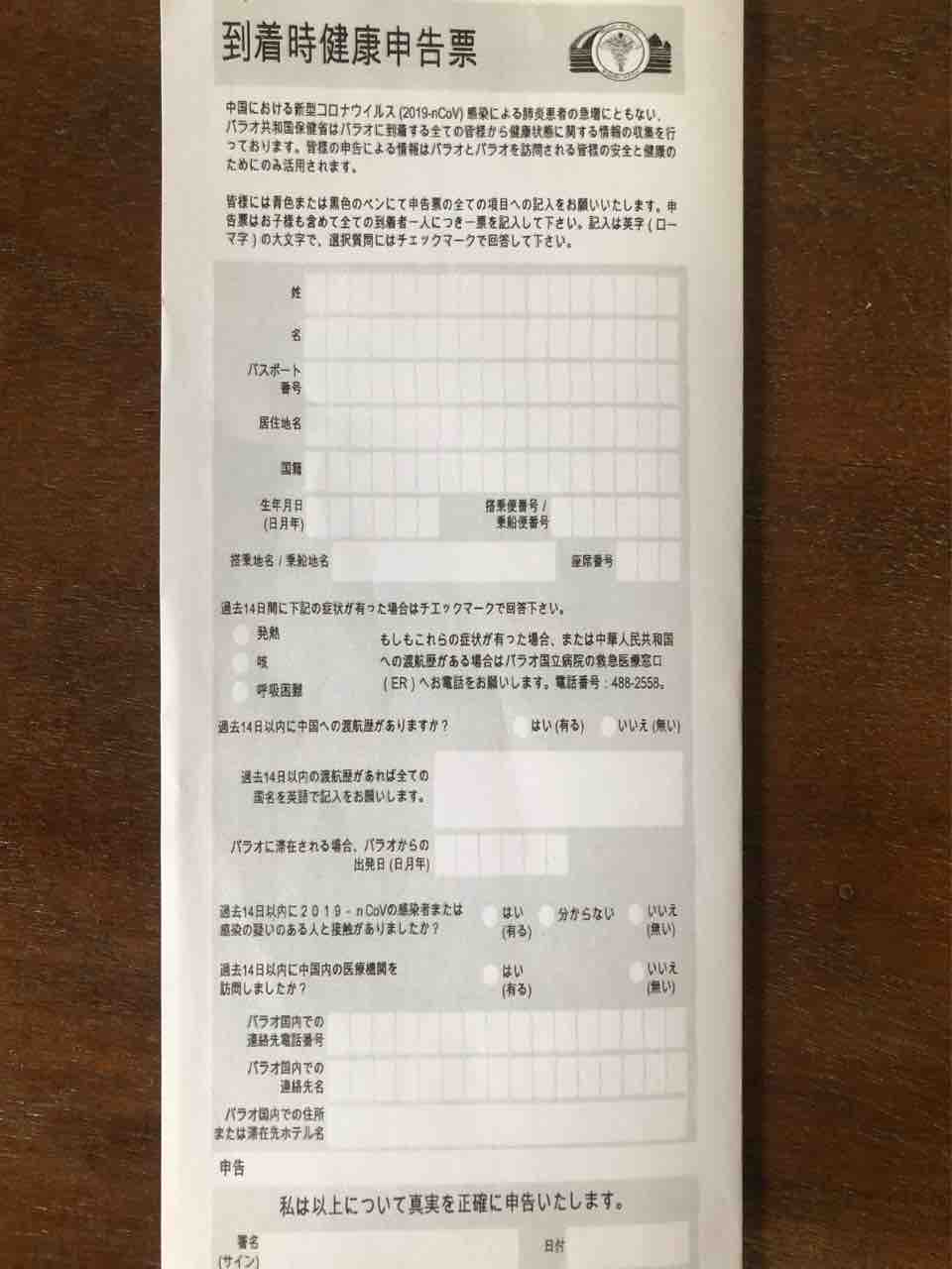 パラオへの入国には健康状況申告書の記入が必要です