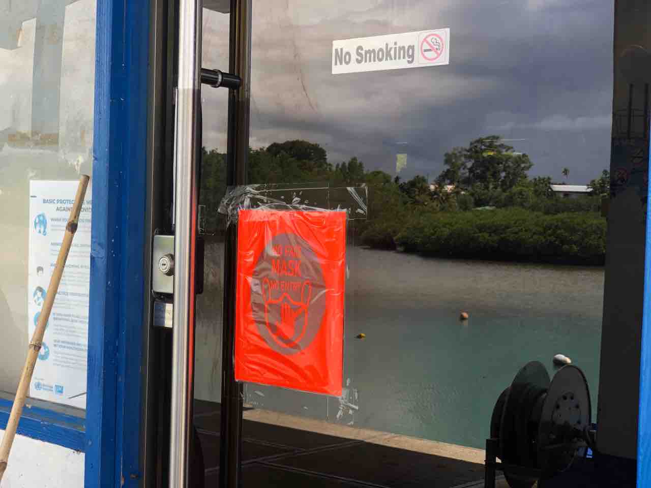 2021年08月26日 マスクだらけ。 ミヤですパラオがマスク人だらけになりました前日から一転した光景スーランゲルスーパーマーケットのロゴもマスクはじめましたそしてパラオ水族館もマスク始めました公的機関はどこもマスク着用を呼びかけ始めました隣のガソリンスタンドのお店も入り口にはこんな張り紙【マスクないと入っちゃダメ】😂