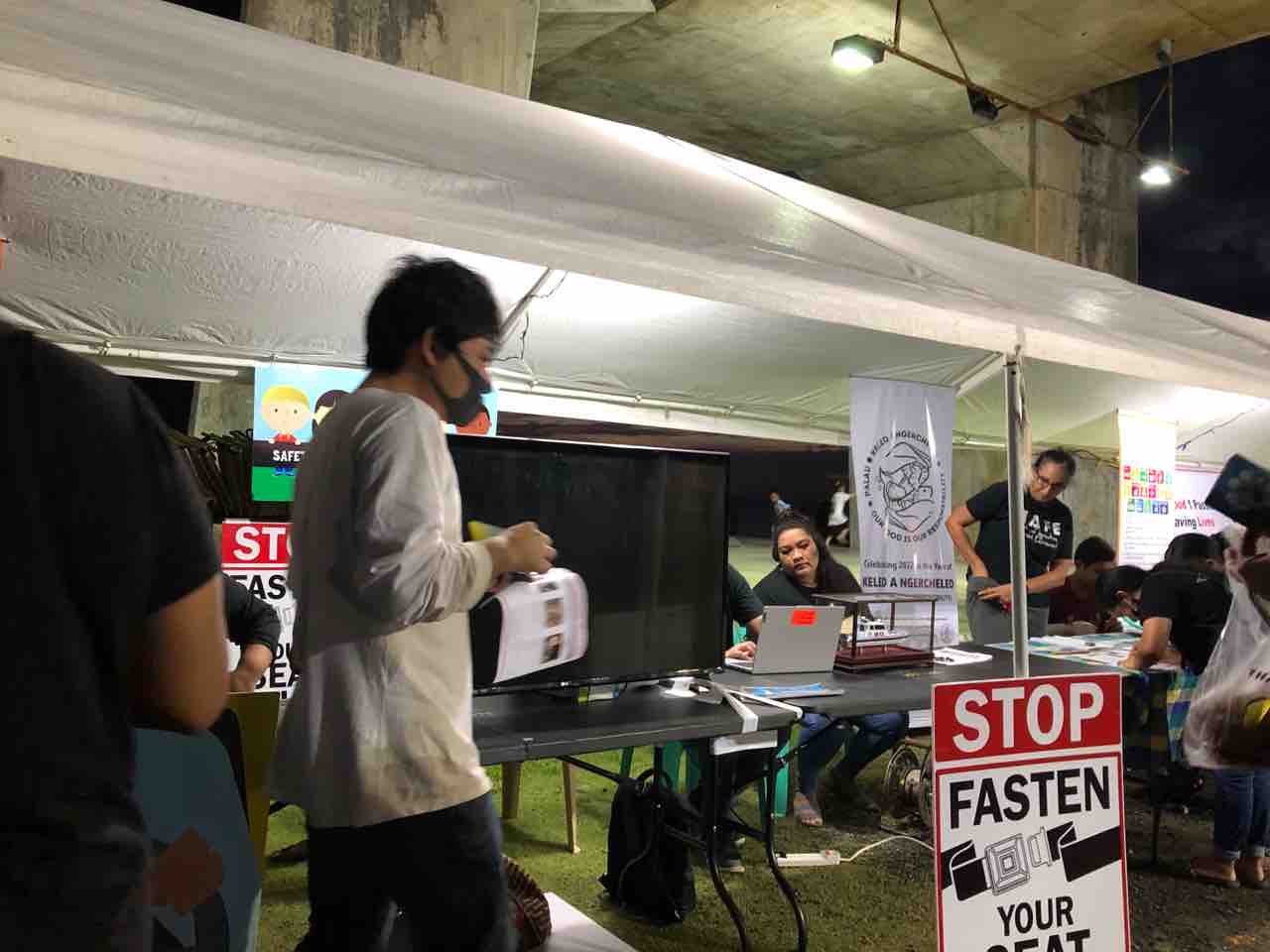 2022年03月28日 パラオ夜市へ ミヤです最近は 土曜日の清掃活動後にパラオ夜市へ行くというルーティーン。清掃活動で一緒になった方々と行くパラオ夜市🇵🇼良いものですねー仲間って😊ブースのテントが⛺️いつしかオレンジ色にローカルフードもいっぱいそしてこの日はシートベルトキャンペーン?!新しく法律となったシートベルト着用の導入にあたっての教育もやってましたいよいよシートベルト始まります