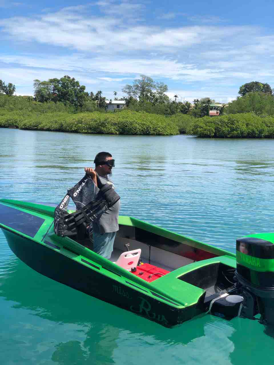 ライフジャケット付けて